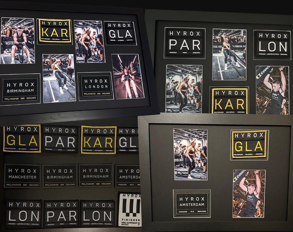 Build your Hyrox patch collection and display it with pride. This multi-patch A3 frame is designed to showcase your race patches along with your favourite event photos. Ideal for repeat racers or those who have raced together!