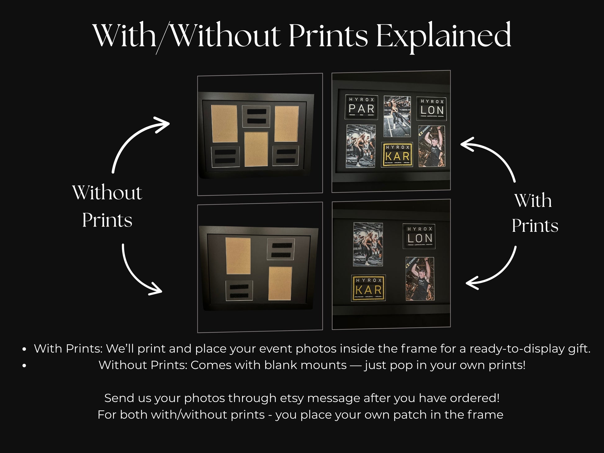 With Prints: We’ll print and place your event photos inside the frame for a ready-to-display gift.